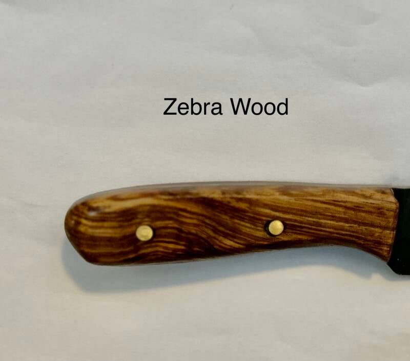 Zebrawood is an exotic wood native to the Western African countries of Cameroon and Gabon. It is a hard wood, with a medium to coarse texture. The Zebra-like appearance is due to the light colored sapwood in contrast with the dark colored grain. Zebrawood is excellent for wood turning, veneer, furniture, pens, and knife handles. It works and finishes fairly, and has good gluing properties.